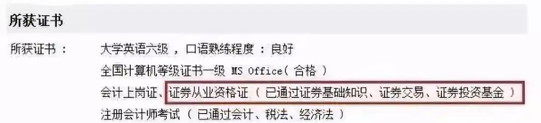 此证书有相当的分量,获取后更有利于就业和正在本专业的发达。分专业测验和归纳测验,专业测验阶段要考6科,难度相对大极少,学生光阴很少全体通过,要留意写明通过的科目,如以下应聘司帐干系岗亭简历模板: